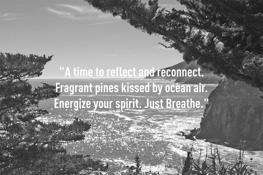 自分と向き合い、つながる時間。そよぐ潮風に包まれる芳しい松の木。エネルギーで満たされ、深呼吸する時間を表現しました。潮風の潤いを含んだフレッシュなモミの木の香りです。