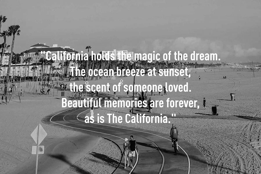 "カリフォルニアに宿る、夢の魔法。夕暮れの海風と、大切な人の香り。美しい記憶は、いつまでもカリフォルニアとともに。"