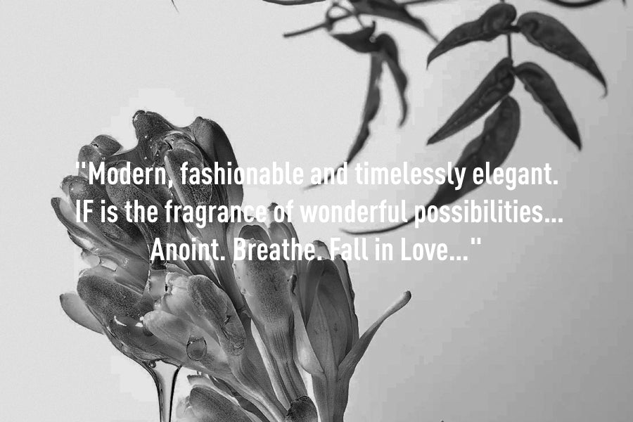 "モダンでファッショナブル、時を超えて漂うエレガンス。無限の可能性を秘めた香り、それがIF。纏い、深く息を吸い込み、そして心を奪われる。"
